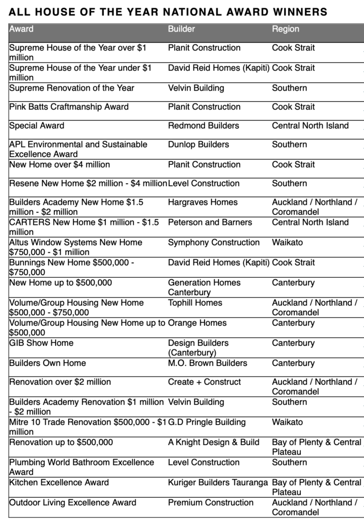 “We are immensely proud of these builders who are delivering exceptional homes for New Zealanders and setting new benchmarks for quality and craftsmanship.